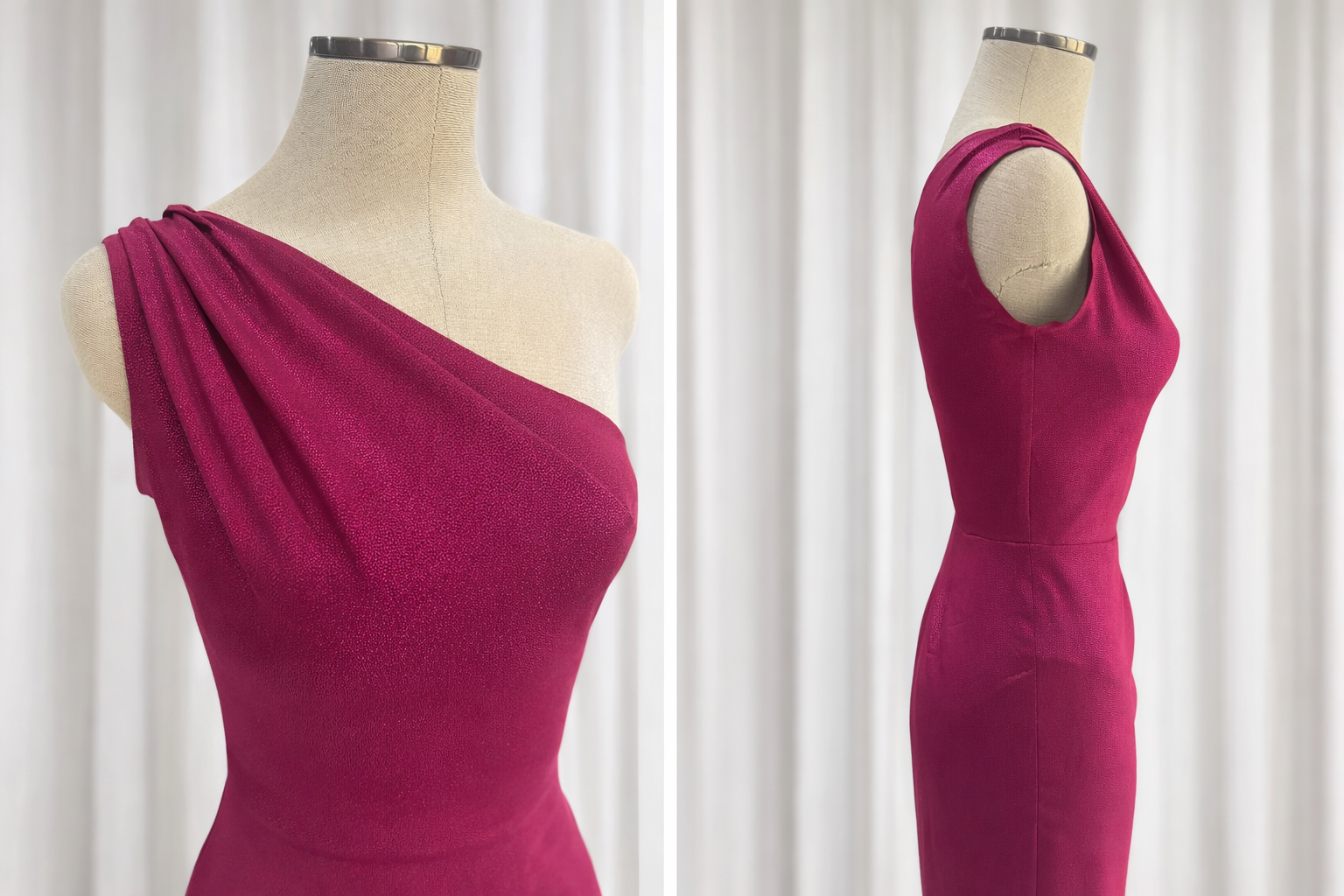 Robe en brocart fleuri, taille M, agrémentée de plis creux à la taille.